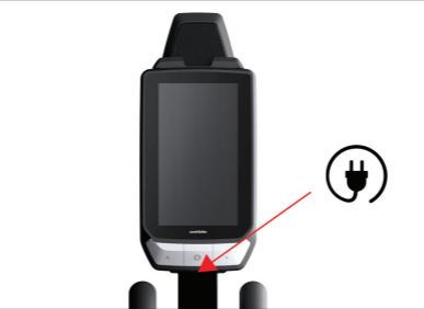 If your AirPro touchscreen is stuck on this screen when you are pedalling the bike, this means the battery in the screen is too low to turn it on via the bike's internal generator and will need charging externally.